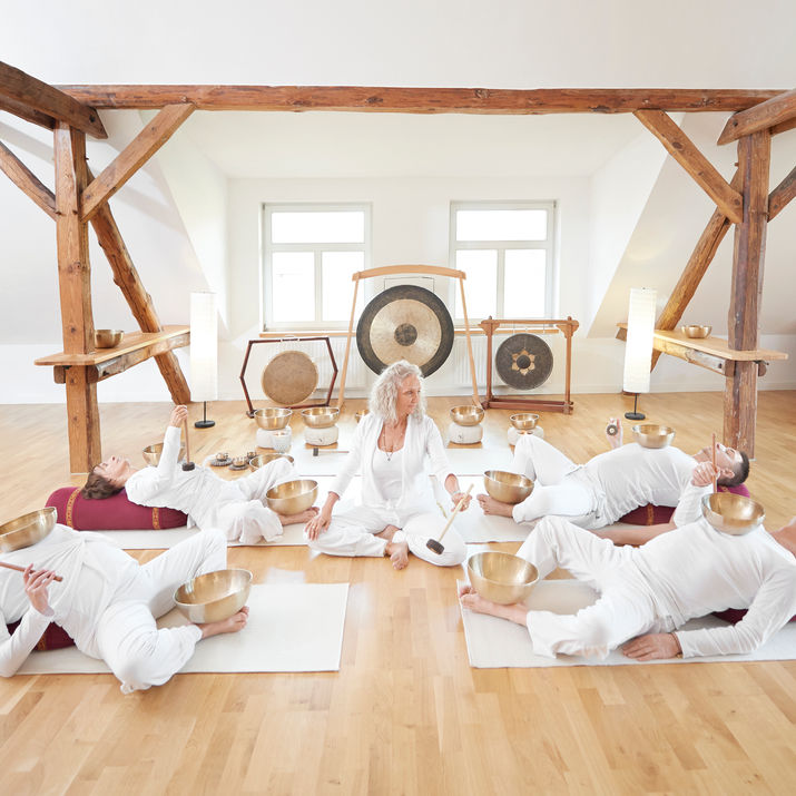Placed on or near your body, their soothing sounds, combined with rhythmic breathing, effortlessly guide you into a relaxed state. The healing vibrations and gentle sounds support your inner balance and strength. In partner exercises, experience Yoga Sound Massages, using therapeutic Singing Bowls to harmonise your cells, release blockages, and create space for positive thoughts and creativity.
